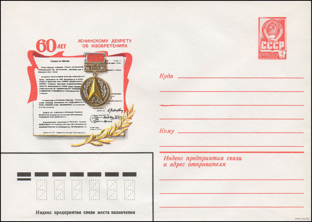 Художественный маркированный конверт СССР N 13596 (20.06.1979) 60 лет Ленинскому декрету об изобретениях