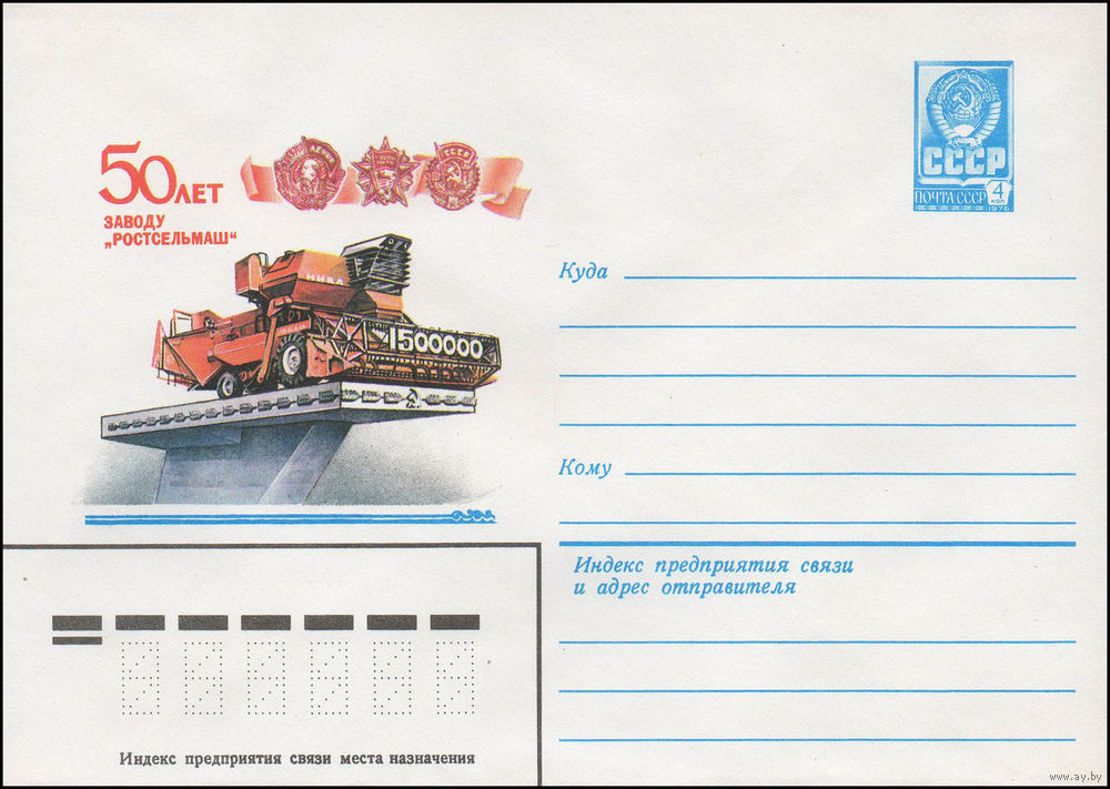 Художественный маркированный конверт СССР N 13658 (20.07.1979) 50 лет заводу "Ростсельмаш"
