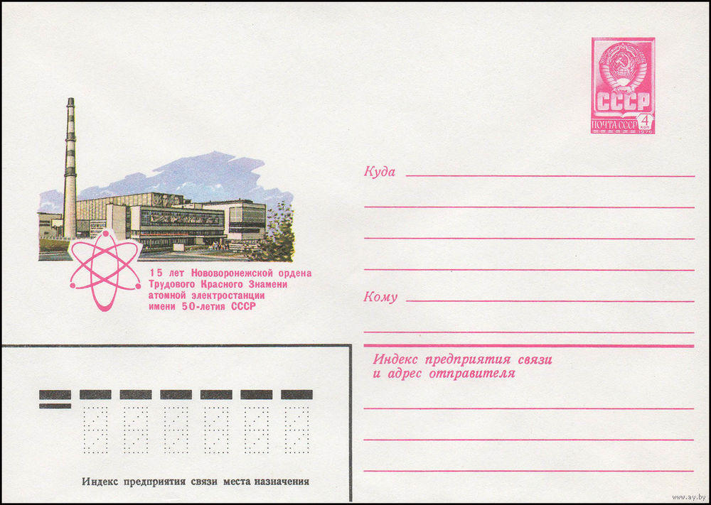 Художественный маркированный конверт СССР N 13732 (31.08.1979) 15 лет Нововоронежской ордена Трудового Красного Знамени атомной электростанции имени 50-летия СССР