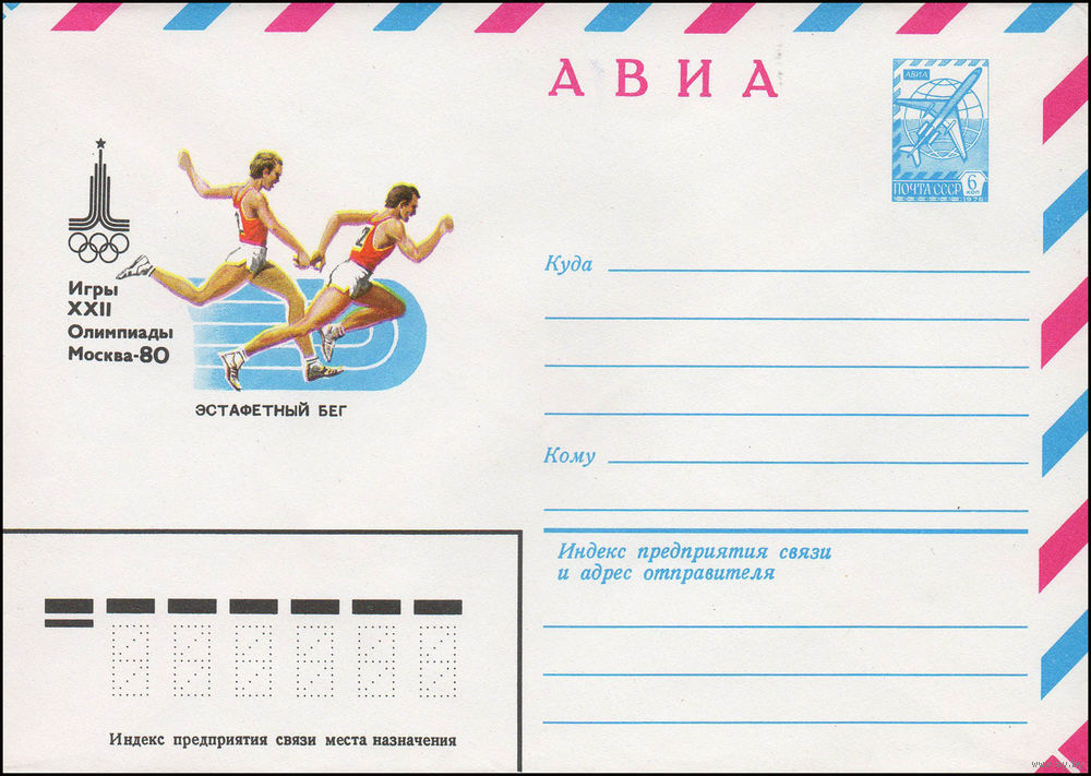 Художественный маркированный конверт СССР N 13782 (13.09.1978) АВИА Игры XXII Олимпиады Москва-80 Эстафетный бег