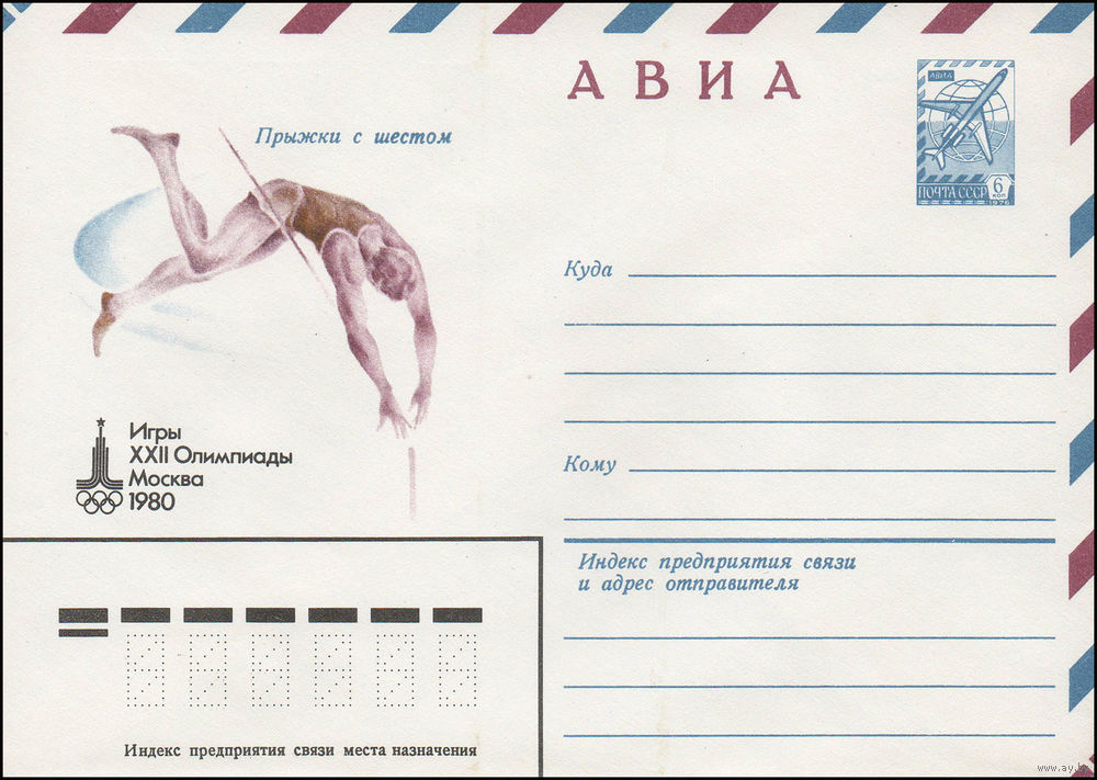 Художественный маркированный конверт СССР N 13783 (13.09.1978) АВИА Игры XXII Олимпиады Москва 1980 Прыжки с шестом