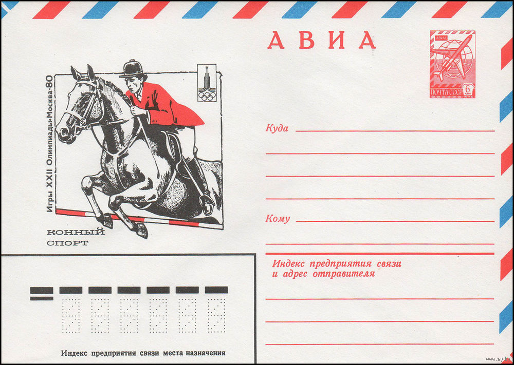 Художественный маркированный конверт СССР N 13786 (13.09.1979) АВИА Игры XXII Олимпиады Москва-80 Конный спорт
