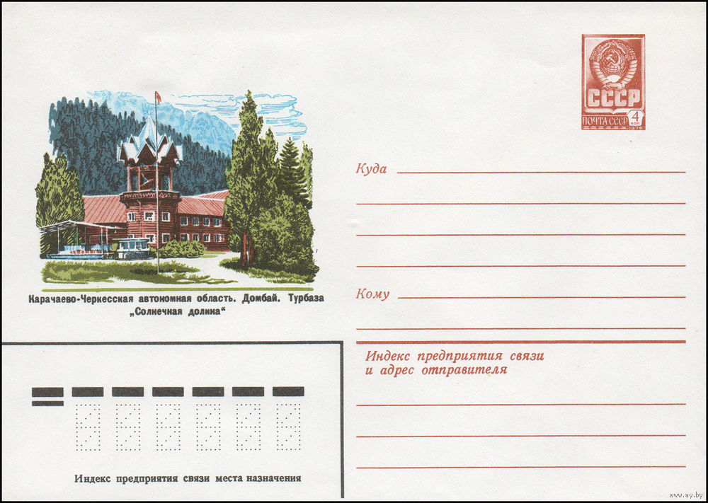 Художественный маркированный конверт СССР N 13959 (07.12.1979) Карачаево-Черкесская автономная область. Домбай. Турбаза "Солнечная долина"