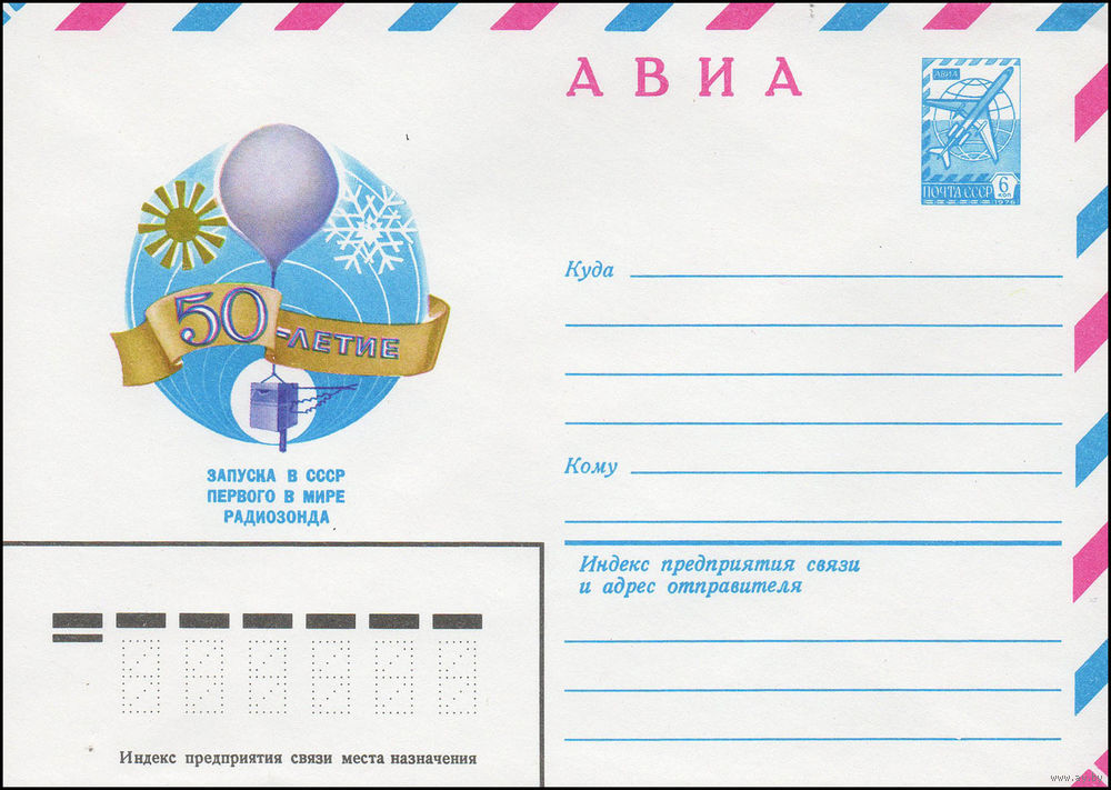 Художественный маркированный конверт СССР N 13966 (05.12.1979) АВИА 50-летие запуска в СССР первого в мире радиозонда