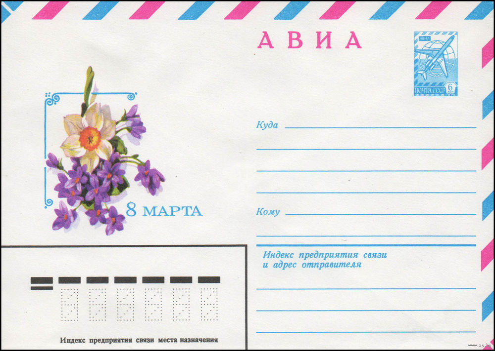 Художественный маркированный конверт СССР N 14057 (09.01.1980) АВИА 8 Марта