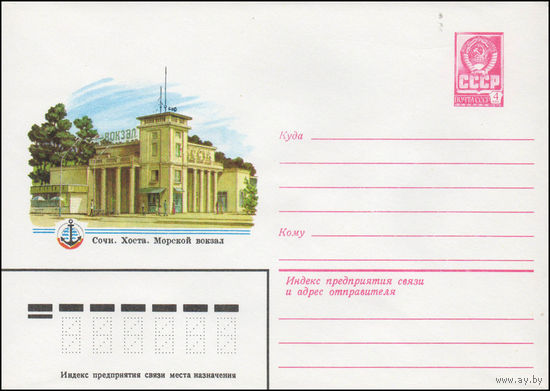 Художественный маркированный конверт СССР N 14108 (07.02.1980) Сочи. Хоста. Морской вокзал