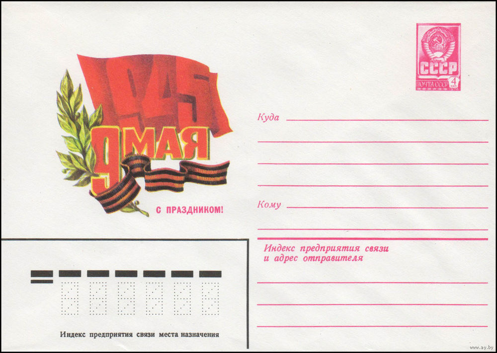 Художественный маркированный конверт СССР N 14149 (26.02.1980) 1945 9 Мая С праздником!
