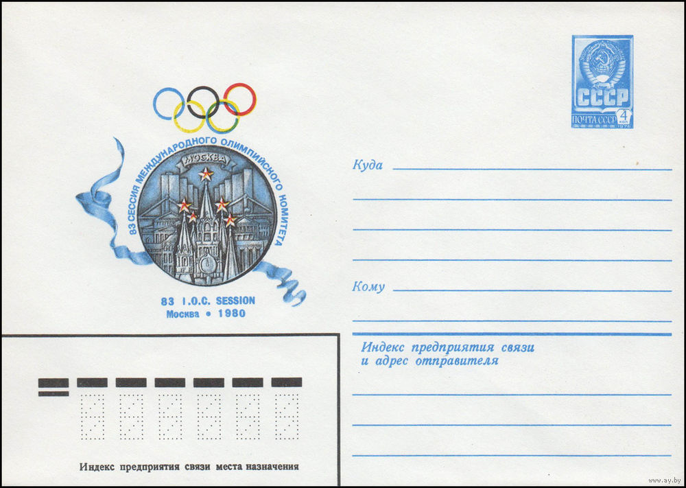 Художественный маркированный конверт СССР N 14421 (01.07.1980) 83 сессия Международного Олимпийского Комитета 83 I.O.C. Session Москва 1980