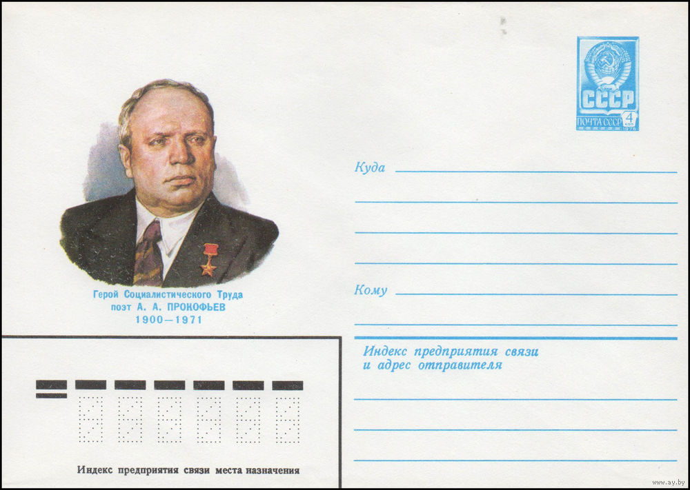 Художественный маркированный конверт СССР N 14442 (09.07.1980) Герой Социалистического Труда поэт А.А. Прокофьев