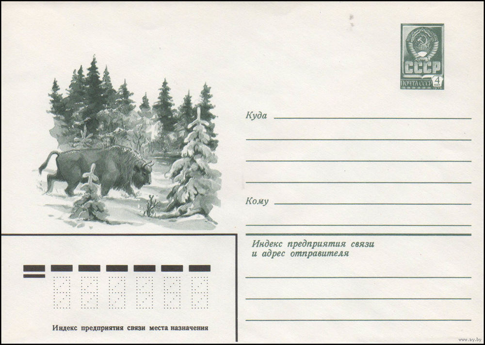 Художественный маркированный конверт СССР N 14470 (23.07.1980) Зимний лесной пейзаж с зубром