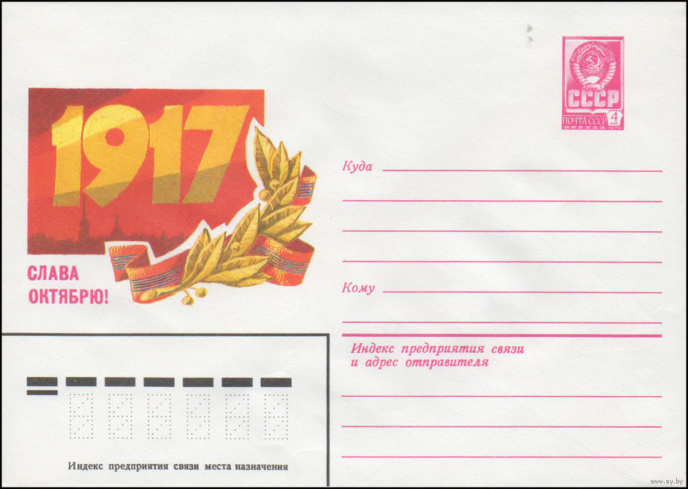 Художественный маркированный конверт СССР N 14542 (27.08.1980) 1917 Слава Октябрю!