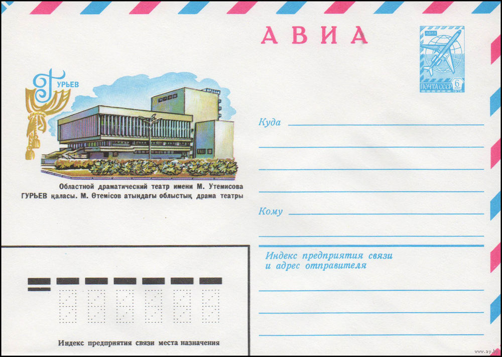 Художественный маркированный конверт СССР N 14548 (28.08.1980) АВИА Гурьев Областной драматический театр имени М. Утемисова