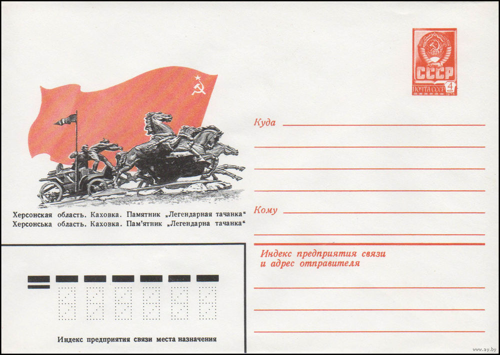 Художественный маркированный конверт СССР N 14601 (14.10.1980) Херсонская область. Каховка. Памятник "Легендарная тачанка"