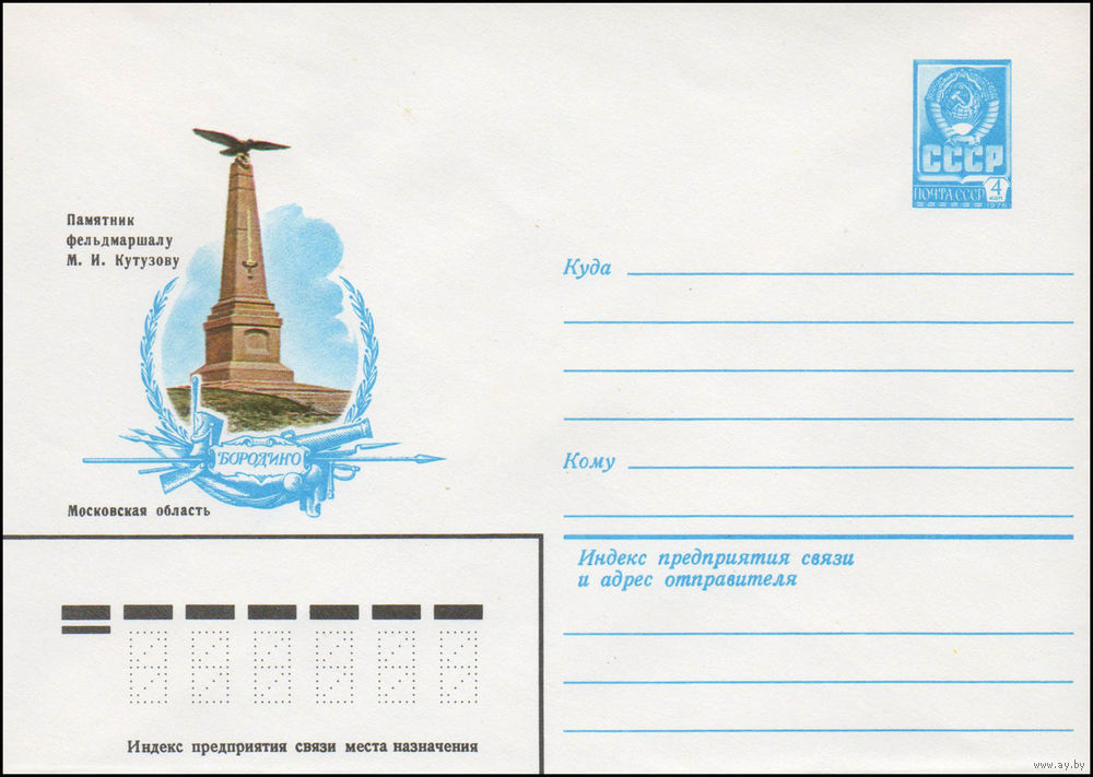 Художественный маркированный конверт СССР N 14655 (21.11.1980) Бородино Памятник фельдмаршалу М.И. Кутузову Московская область