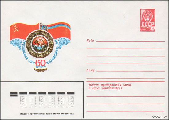 Художественный маркированный конверт СССР N 14708 (23.12.1980) Грузинская ССР 60 лет