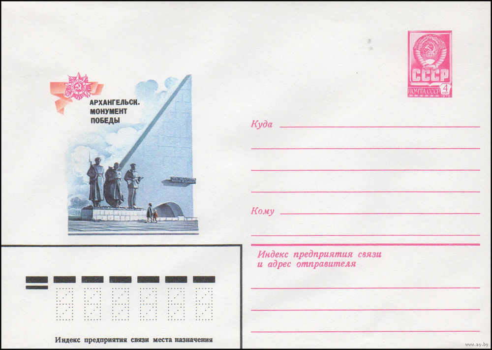 Художественный маркированный конверт СССР N 14720 (25.12.1980) Архангельск. Монумент Победы