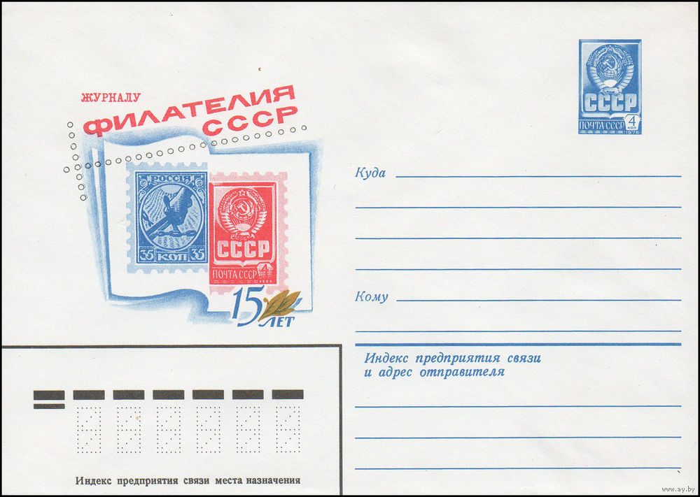 Художественный маркированный конверт СССР N 14753 (15.01.1981) Журналу "Филателия СССР" 15 лет