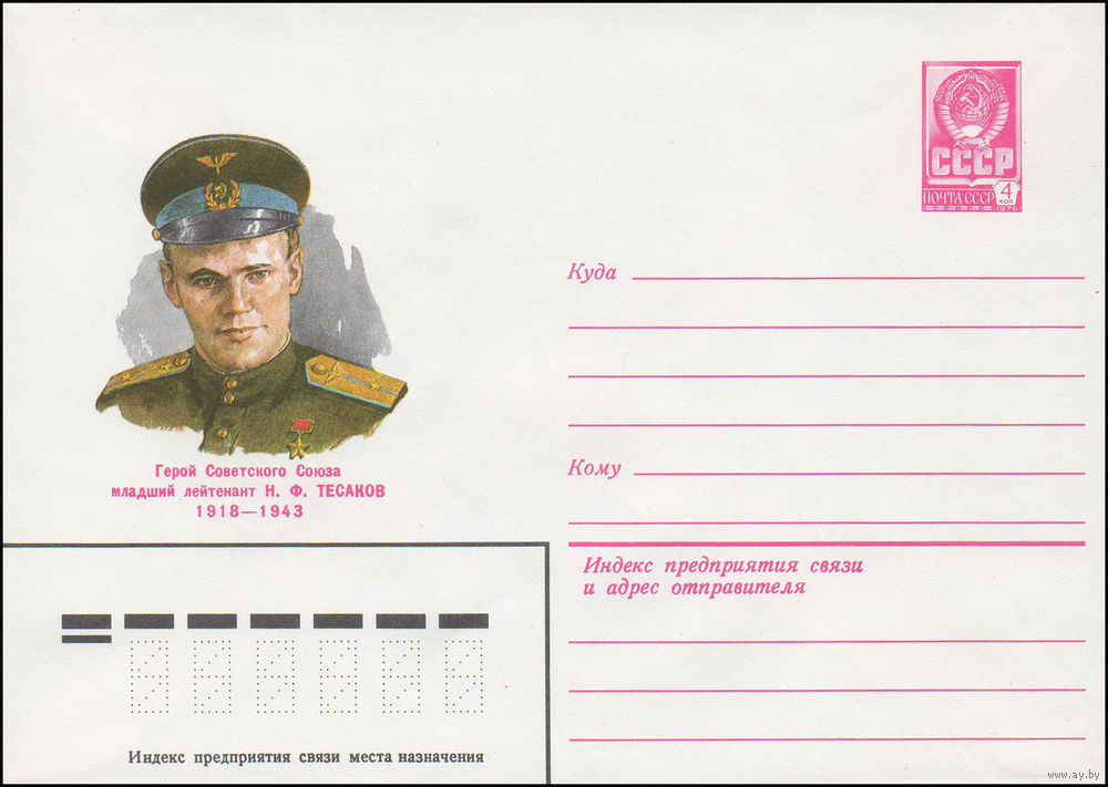 Художественный маркированный конверт СССР N 14880 (26.03.1981) Герой Советского Союза младший лейтенант Н.Ф. Тесаков 1918-1943