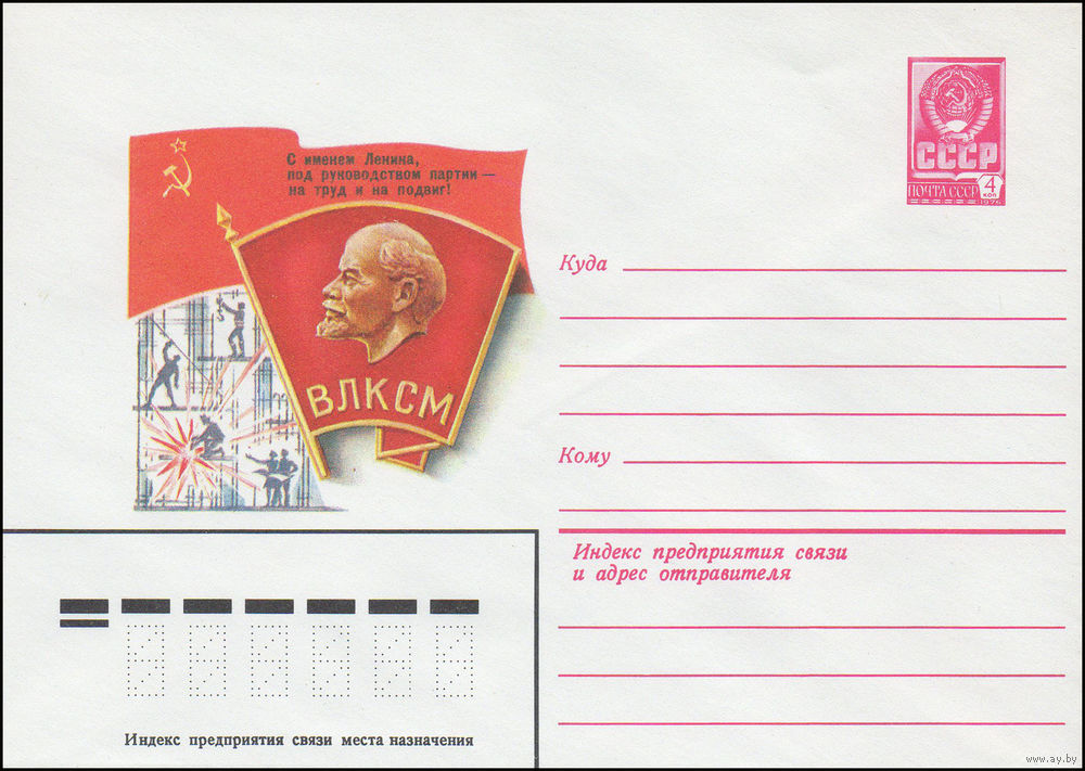 Художественный маркированный конверт СССР N 14927 (17.04.1981) С именем Ленина, под руководством партии - на труд и на подвиг!