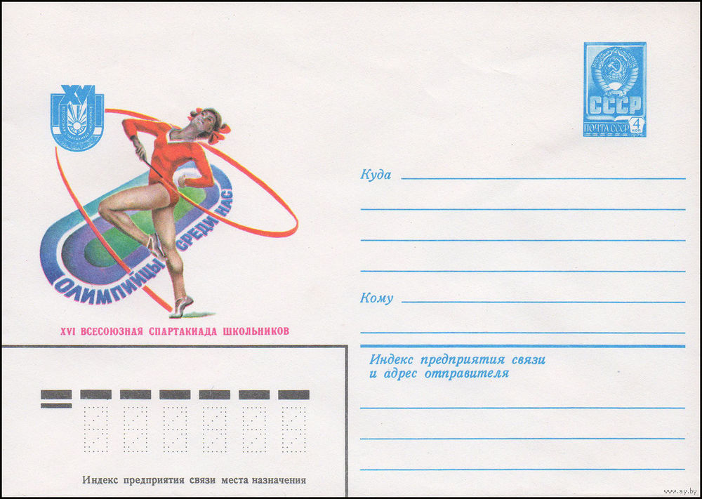 Художественный маркированный конверт СССР N 15002 (10.06.1981) Олимпийцы среди нас XVI Всесоюзная спартакиада школьников