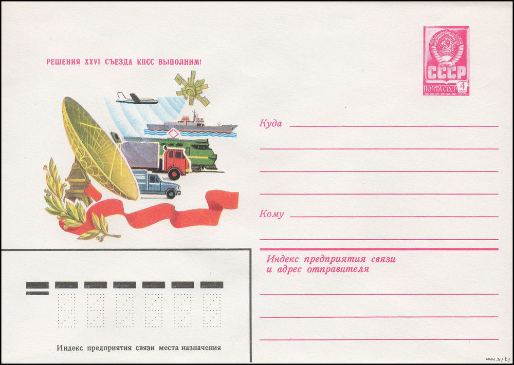 Художественный маркированный конверт СССР N 15148 (15.09.1981) Решения XXVI съезда КПСС выполним!