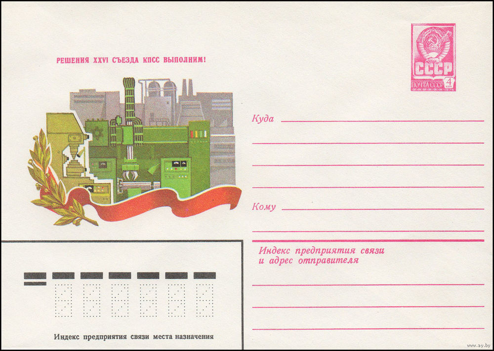 Художественный маркированный конверт СССР N 15184 (09.10.1981) Решения XXVI съезда КПСС выполним!
