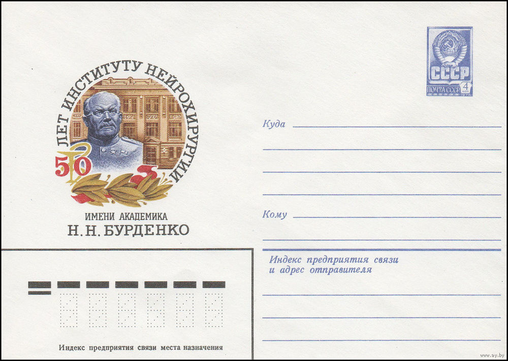 Художественный маркированный конверт СССР N 15278 (20.11.1981) 50 лет Институту нейрохирургии имени академика Н.Н. Бурденко