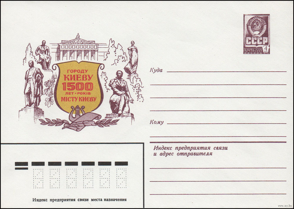 Художественный маркированный конверт СССР N 15282 (26.11.1981) Городу Киеву 1500 лет