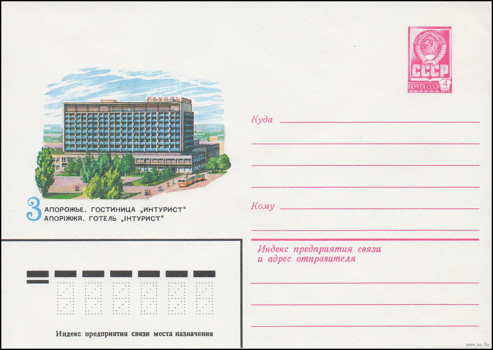 Художественный маркированный конверт СССР N 15303 (10.12.1981) Запорожье. Гостиница "Интурист"
