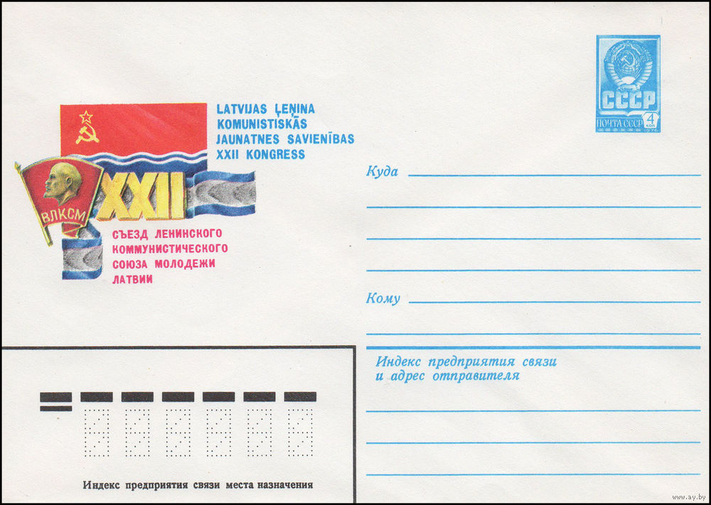 Художественный маркированный конверт СССР N 15332 (22.12.1981) XXII съезд Ленинского коммунистического союза молодежи Латвии