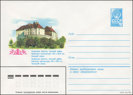 Художественный маркированный конверт СССР N 15333 (22.12.1981) Львовская область. Бусский район. Памятник архитектуры XIV-XVII вв. Олеский замок