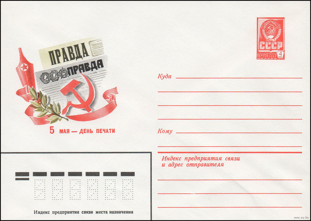 Художественный маркированный конверт СССР N 15380 (28.12.1981) 5 мая - День печати