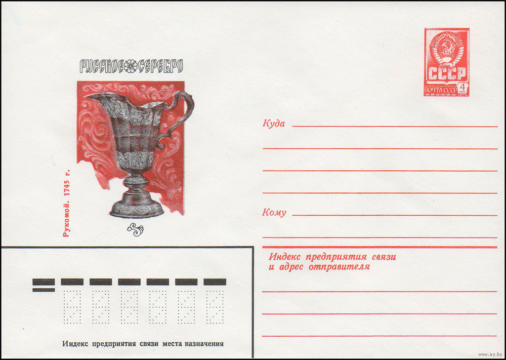 Художественный маркированный конверт СССР N 15456 (03.02.1982) Русское серебро. Рукомой. 1745 г.