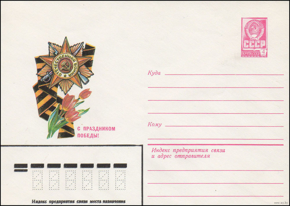 Художественный маркированный конверт СССР N 15463 (11.02.1982) С праздником Победы!