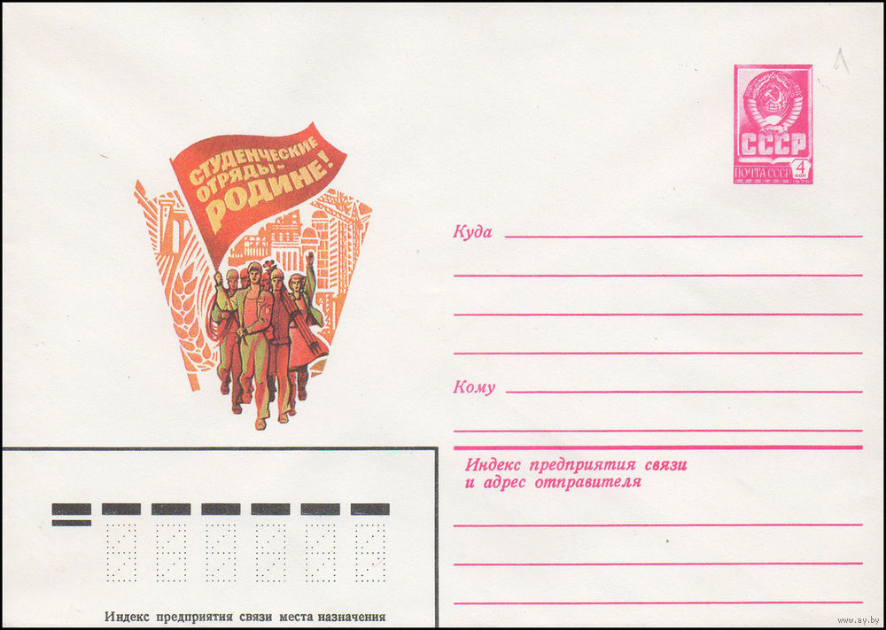 Художественный маркированный конверт СССР N 15477 (02.03.1982) Студенческие отряды - -Родине!