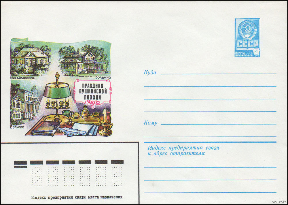 Художественный маркированный конверт СССР N 15554 (02.04.1982) Михайловское Болдино Берново Праздник Пушкинской поэзии