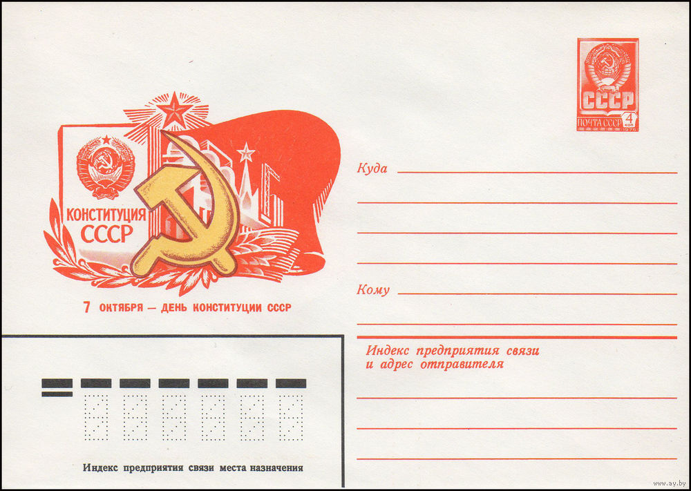 Художественный маркированный конверт СССР N 15756 (06.07.1982) 7 октября - День Конституции СССР