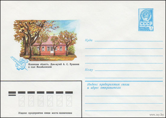 Художественный маркированный конверт СССР N 15793 (11.08.1982) Псковская область. Дом-музей А.С.Пушкина в селе Михайловском