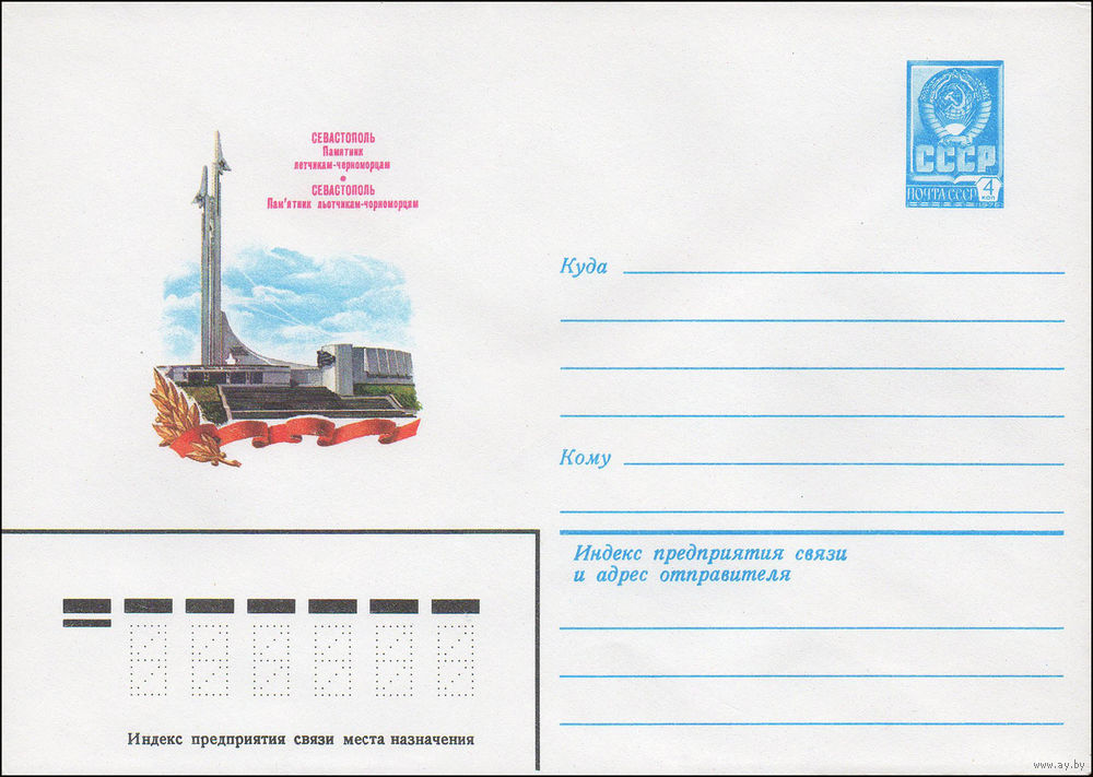 Художественный маркированный конверт СССР N 15920 (28.10.1982) Севастополь Памятник летчикам-черноморцам