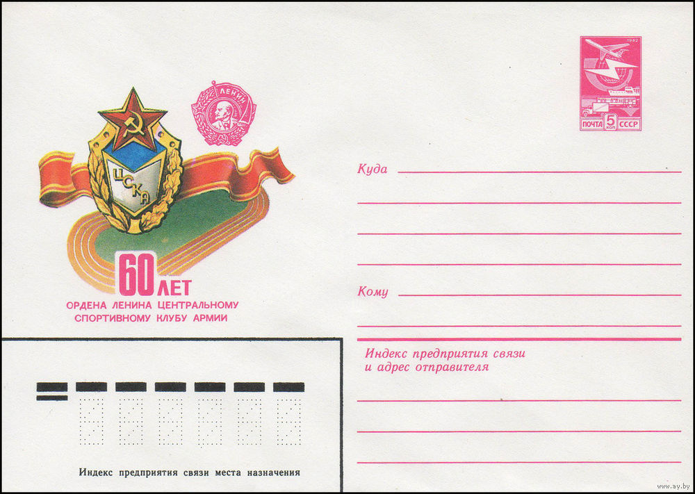 Художественный маркированный конверт СССР N 16054 (26.01.1983) 60 лет ордена Ленина Центральному спортивному клубу Армии