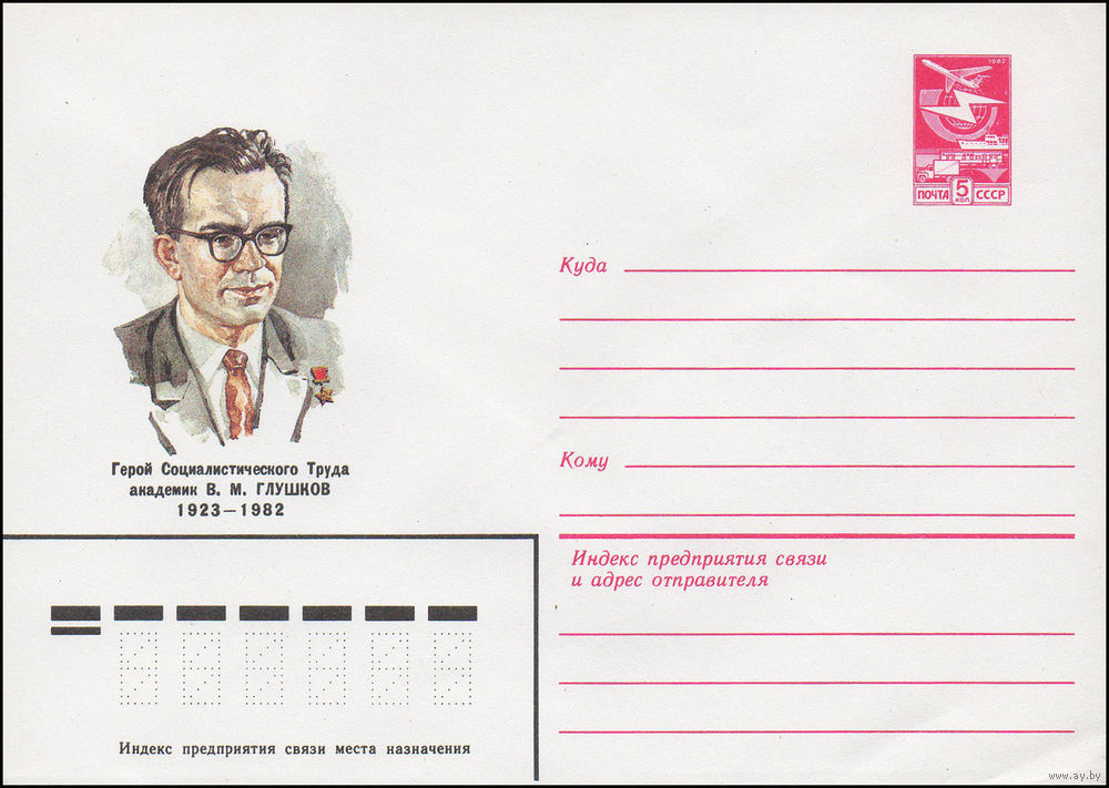 Художественный маркированный конверт СССР N 16064 (01.02.1983) Герой Социалистического Труда академик В.М. Глушков 1923-1982