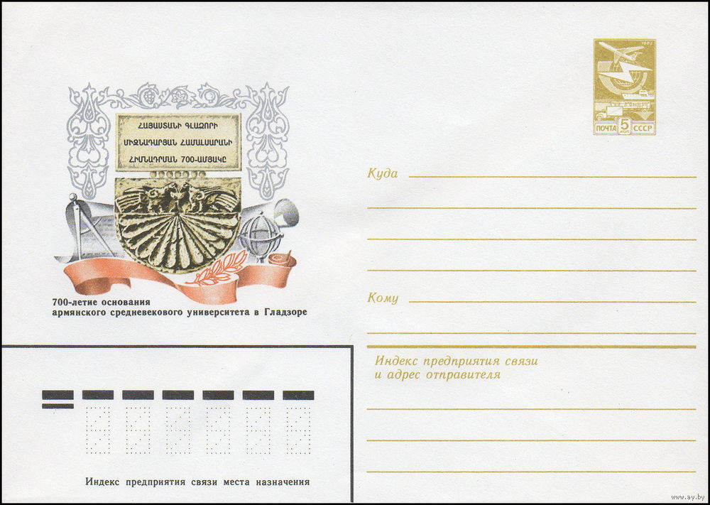 Художественный маркированный конверт СССР N 16303 (14.06.1983) 700-летие основания армянского средневекового университета в Гладзоре