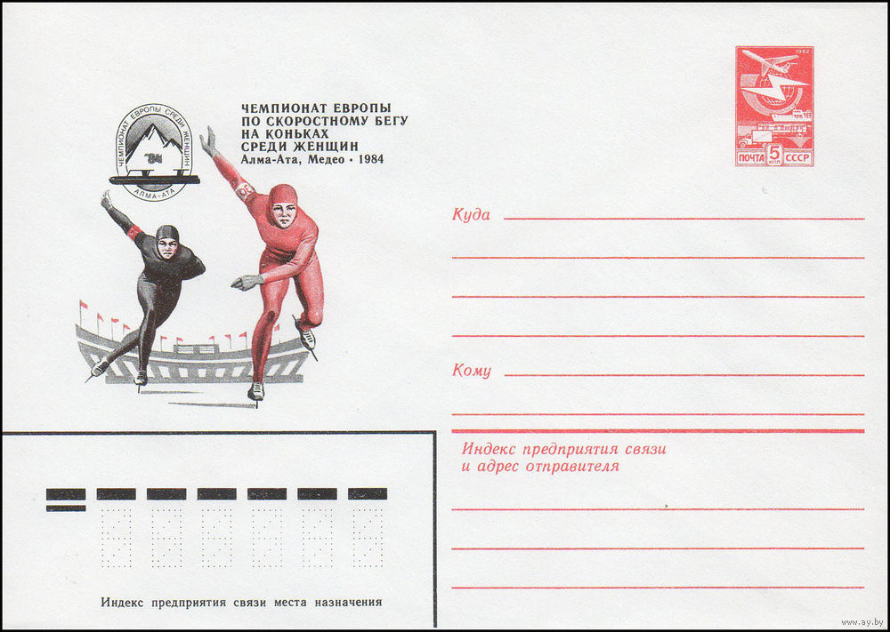 Художественный маркированный конверт СССР N 16349 (29.06.1983) Чемпионат Европы по скоростному бегу на коньках среди женщин Алма-Ата. Медео - 1984
