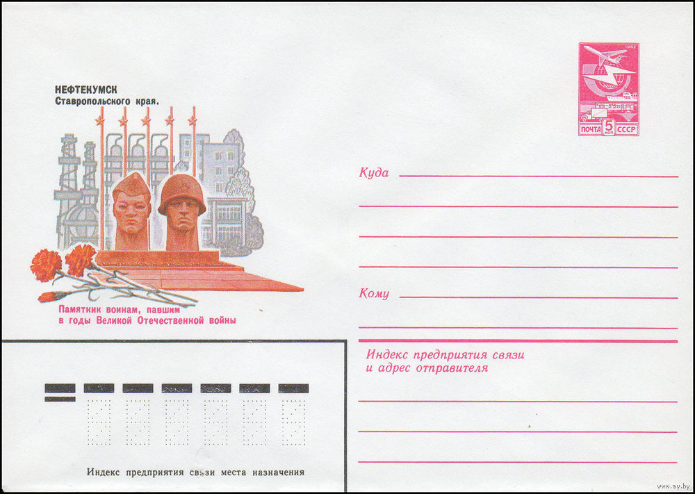 Художественный маркированный конверт СССР N 16375 (18.07.1983) Нефтекамск Ставропольского края. Памятник воинам, павшим в годы Великой Отечественной войны