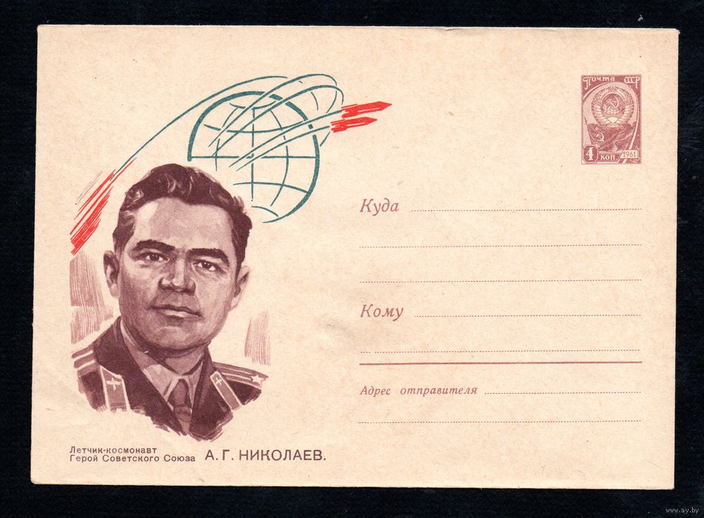 Художественный маркированный конверт СССР N 2186 (30.08.1962) Летчик-космонавт Герой Советского Союза А.Г. Николаев.