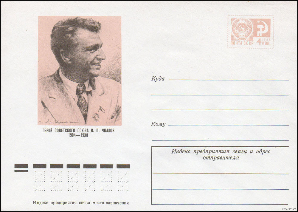 Художественный маркированный конверт СССР N 74-219 (26.03.1974) Герой Советского Союза В.П. Чкалов 1904-1938