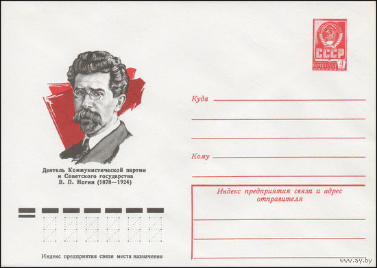 Художественный маркированный конверт СССР N 77-618 (24.10.1977) Деятель Коммунистической партии и Советского государства В.П. Ногин (1878-1924)