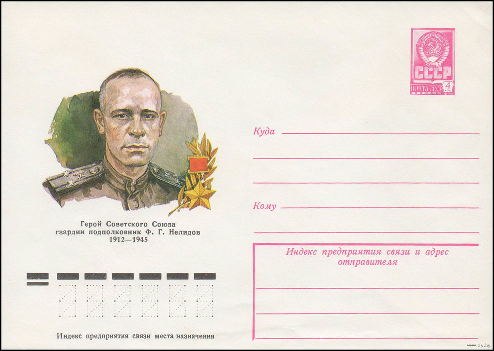 Художественный маркированный конверт СССР N 78-129 (27.02.1978) Герой Советского Союза гвардии подполковник Ф.Г. Нелидов 1912-1945