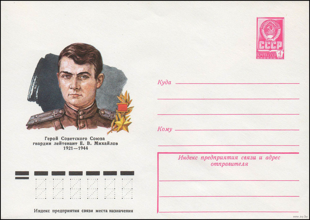 Художественный маркированный конверт СССР N 78-148 (07.03.1978) Герой Советского Союза гвардии лейтенант Е.В.Михайлов 1921-1944