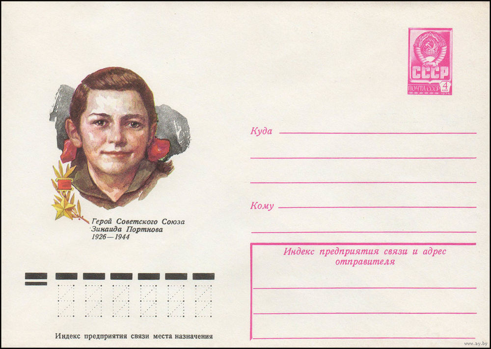 Художественный маркированный конверт СССР N 78-390 (24.07.1978) Герой Советского Союза Зинаида Портнова 1926-1944